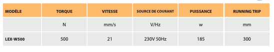 LEX-W500 – Moteur réducteur 230 V pour Skydoom et ouvrant à tige.